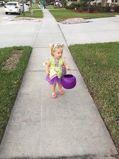 Anyone who knows me well, knows Halloween is not a favorite holiday of mine. We usually celebrate more of it being "Fall" versus Halloween. I do though enjoy dressing the girls up and doing some trick or treating. Now if only I could make everyone's costumes nice and loving and have no scary houses, we would be in business. (My poor kids are doomed, I am terrified of all scary movies, hate scary/gross costumes, and would never go in a haunted house!) I dressed the girls as Fairy sisters and they looked so cute in their matching outfits.